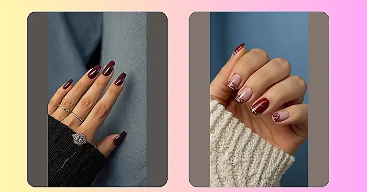 Look at these nails! They’re like tiny, sparkling jewels on your fingertips, showing off that deep, gorgeous berry colour with just the right amount of glitter shimmer. They instantly make you feel fancy, like you could be walking a runway or just totally owning that math test. The best part is, they look super sophisticated and put-together without looking like you tried too hard. It’s the perfect way to add a little sparkle and class to your look without spending hours on complicated designs that smudge right when you’re done.
