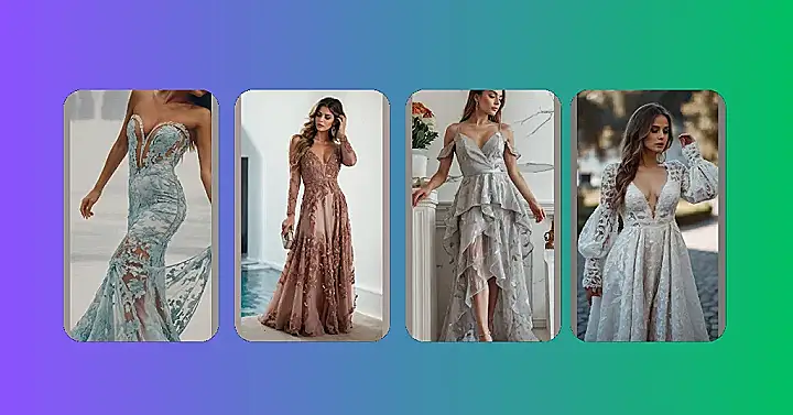This dress is like a blooming flower in a sea of blue! With its delicate lace and beautiful floral patterns, it’s a total showstopper. Imagine twirling in this dress at a fancy garden party, catching the light like a sparkling butterfly. It’s the perfect combination of elegance and playfulness, and you’ll feel like a princess stepping out of a fairytale.