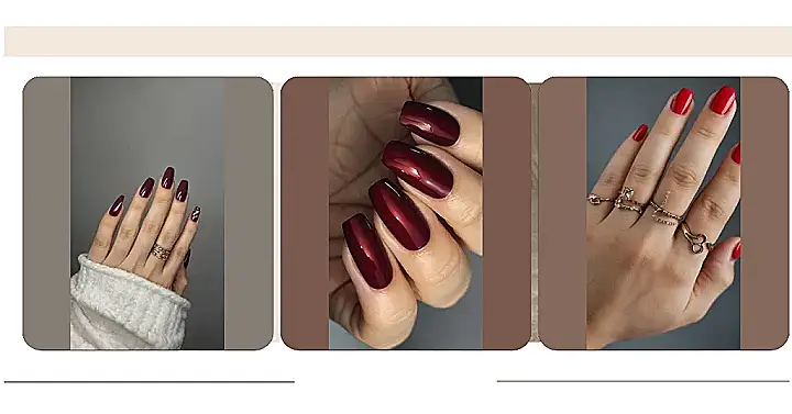 Red nails are always a classic, but this deep red shade is perfect for the colder months. It’s super chic and elegant, and it really makes your fingers pop. Plus, it’s totally on-trend right now, so you’ll be the envy of all your friends! üíÖ‚ú®