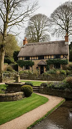 Makes you wonder what kind of cozy magic happens inside this place. Is there a hobbit having elevenses by a crackling fire, or perhaps a wizard brewing tea? The winding path beside the water looks like it could lead to adventure, and that stone fountain probably has seen a few secrets in its day. Exploring an english village like this and trying your hand at photography feels like a quest to capture pure charm. You’ll be snapping pictures of everything from the wonky chimneys to the perfectly pruned bushes because this place is ridiculously picturesque.