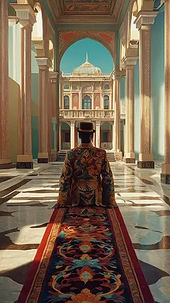 That hallway goes on forever! Seriously, if you ever lost your phone in this palace, you’d probably need a map and a week’s worth of snacks to find it again. Also, who needs to go to an art gallery when your own palace wallpaper has little landscape paintings right above you? Talk about decorating goals. I think I’d even be willing to do the dishes if it meant I got to admire this wallpaper all the time!