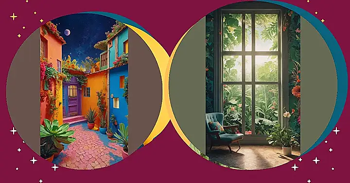 Wow, this picture is like stepping into a super-fun, slightly-crazy dream! The buildings are so ridiculously bright, like they decided being boring was just not an option today. Plus, those plants are practically overflowing with colour, and check out that starry sky and moon! It’s like a party is happening up there too. If you’re looking for artistic wallpaper that screams personality and maybe even moonbeams, this scene is totally ready to jump onto your screen and make everything way more awesome.