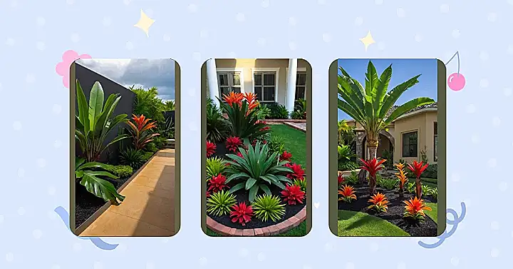 Now, think about it. Bromeliads don’t just look pretty. They’re like the superheroes of the plant world, soaking up water like little sponges and thriving in the hot sun. And they come in every color of the rainbow! They’re like the colorful sprinkles on this already delicious tropical landscape cake!