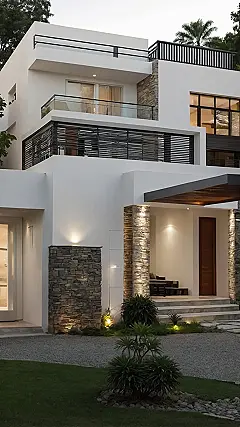 Thinking about your dream house is like trying to pick superpowers – you want *everything*! Maybe you pictured a place with a built-in chocolate river or a room dedicated entirely to petting puppies. While those might be tricky to get past the building inspector, looking at awesome places like the one in the picture totally kicks off the “dream house plans” phase. See that cool stone and the fancy door? That’s the kind of detail that takes a house from “just okay” to “woah, is this real life?!” It makes you start thinking, “Okay, maybe the chocolate river is out, but how about a super epic gaming room *with* a mini-fridge?”