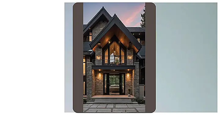 Looking at this awesome house in the picture makes you want to grab a crayon and start drawing your own ‘dream house plans’, right? Forget tiny boxes, we’re talking rooms dedicated entirely to video games, walls made of candy (okay, maybe not that practical), and windows so big you can see everything without having to actually go outside. This house looks like it took all the coolest ideas and put them together, from the giant pointy window perfect for gazing dramatically outside to the fancy stone walls that look like they belong in a castle, but way more modern.