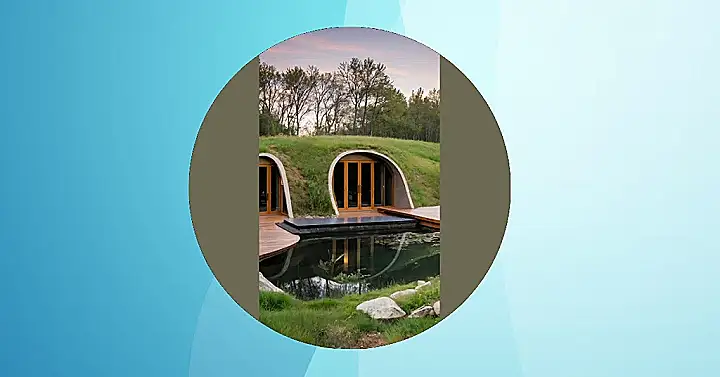 Check out this house hiding in the picture! It’s an “earth sheltered home,” which sounds super serious, but really just means it’s snuggled right into the side of a hill. It’s like the house is playing the ultimate game of hide and seek with the world, blending in so well you might accidentally mistake it for a really fancy boulder. Imagine trying to give directions to your friends – “Just look for the giant rock that looks suspiciously like a doorway!” It’s basically the coolest, most camouflaged secret hideout you could ask for, perfect for avoiding unwanted visitors or surprise pop quizzes.