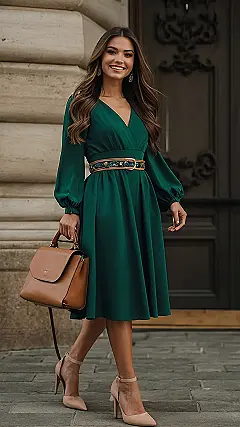 Okay, so picture this: you’re strolling down the Champs-Élysées, maybe grabbing a pain au chocolat, and you see someone rocking this amazing green dress. It’s totally giving off sophisticated vibes without trying too hard, you know? The belt adds a touch of flair, and the whole outfit is just *chef’s kiss* perfect for a day of exploring Paris or even just pretending you are.
