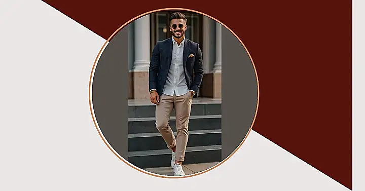 Trying to dress like you’re ready to star in a movie without looking like you tried too hard? Well, check out this dude! He’s rocking a blazer and dress pants, but he smartly avoids looking stuffy by adding fresh white sneakers. The secret weapon here is keeping things comfy but polished, like wearing your nicest pajamas out in public (but way better). Think of it as the “cool teacher” vibe, where you still follow the rules, but with your own personal twist.