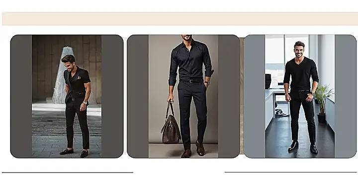 Let’s be real, sometimes putting on a simple outfit like black pants and a nice black shirt feels like you’ve unlocked a cheat code for looking good. It’s like, bam! Instant style upgrade. No need for a tie you don’t know how to knot or a jacket that feels like a straitjacket. Just clean lines, decent shoes, maybe a cool watch or bracelet like our friend here, and you’re ready to mingle. Plus, wearing black means you can spill a tiny bit of something and maybe nobody will even notice. Winning!
