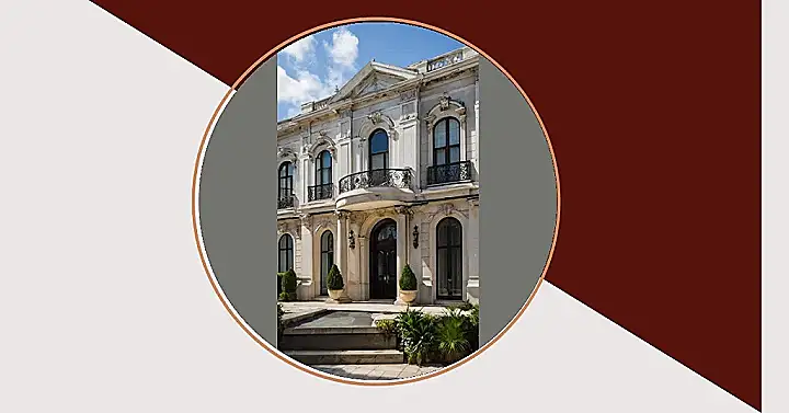 This house is seriously fancy! It looks like something out of a movie, with its tall columns, big windows, and a super-fancy balcony. Imagine all the secret passages and hidden rooms this place could have! It’s like the perfect place to throw a super awesome party, and definitely makes you think about how awesome it would be to live in a place like this.