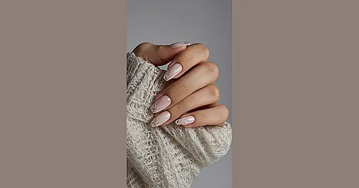 Forget those nails that look like they belong in a museum (and probably cost a fortune!). These nails, peeking out from that comfy sweater like a secret agent of style, are the real heroes. They’re so simple, like your favorite comfy hoodie, but the little touch of sparkle and that cool swirl? That’s where the classy magic happens. It’s like whispering “I’m fabulous” instead of shouting it with neon colours and 3D charms that get stuck in your hair.