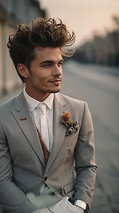 This dude is clearly rocking the “about to star in my own movie” look. He’s got that slightly brooding, but also super stylish thing going on. It’s like James Bond decided to dress up for a chill garden party instead of chasing bad guys. That pocket square looks fancy, and so do the suit and the haircut. If you’re trying to impress, taking a leaf out of this guy’s book will do the trick.