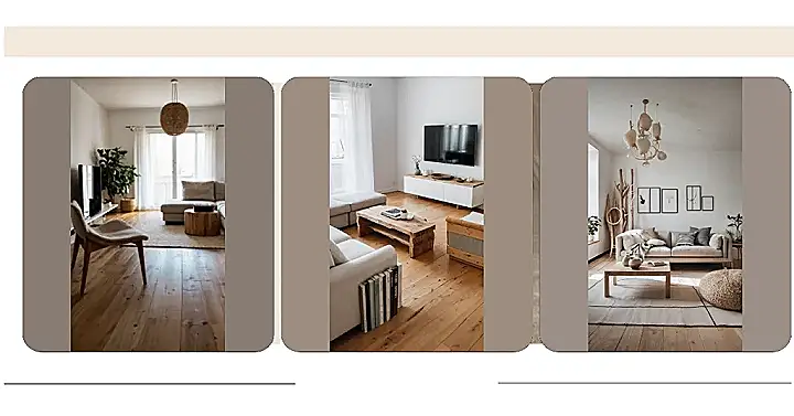 This living room is like a breath of fresh air! It’s all about clean lines, natural materials, and a calming color palette. Those sleek, minimalist art prints of trees just scream “Scandinavia” – like they’re straight out of a cozy cabin in the woods. And the comfy-looking couch, the chunky wooden coffee table, and that woven ottoman just make you want to curl up with a good book and a hot cup of cocoa (or maybe a glass of something stronger, if you’re feeling fancy).