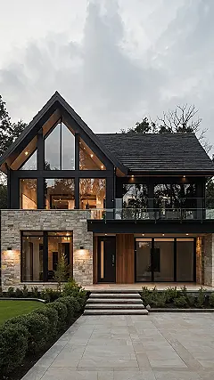 Building a house isn’t just about stacking bricks and hoping for the best; it’s like playing a giant game of architectural Jenga, but way more stylish. Look at this place – it’s got stone like a medieval castle foundation, warm wood like a fancy treehouse, and giant windows that practically invite the outside in. It’s not random; this house architecture design is someone’s cool idea brought to life, proving that even buildings can have serious personality, maybe even enough to stare back at you!