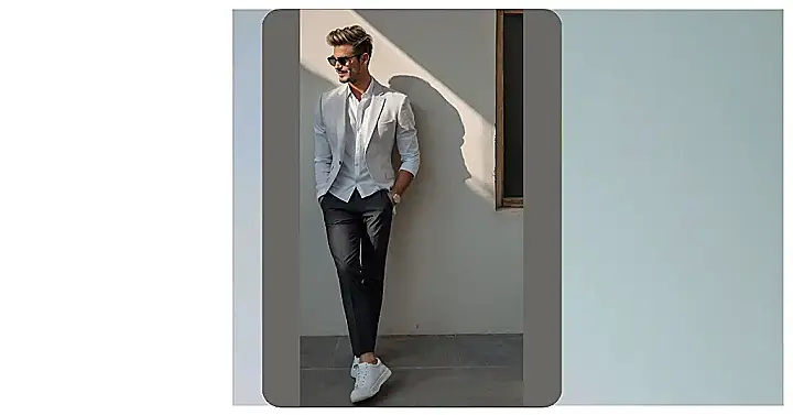 Want to look like you just stepped out of a magazine? Check out this guy! He’s rocking the “effortlessly cool” look with a light blue shirt and crisp white pants. It’s like he’s saying, “Yeah, I woke up like this,” even though we all know it probably took him a solid hour in front of the mirror (totally worth it, though!). If you are looking for mens handsome outfits, this is it.