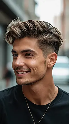Ready to ditch the same old boring haircut? This hairstyle is like a party on top and business on the sides! It’s got that cool, faded look that everyone’s rocking, but with enough volume on top to make you feel like you’re secretly a superhero with amazing hair powers. Just be warned, you might need a little hair product and some serious mirror time to get it looking this slick!