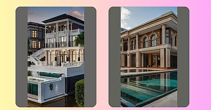 This house is no ordinary dwelling, it’s a mansion with a splash! It’s like someone took a regular house and said “Let’s add a pool! And maybe some fancy columns too!”. This house has it all – beautiful architecture, fancy balconies, and a swimming pool that looks like it was made for lounging in the sun with your friends. You’d probably be the envy of all your friends if you lived here, but you might get tired of bragging about your amazing pool!