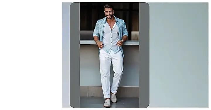 This outfit is like summer vacation in clothing form. Seriously, who wouldn’t want to rock this at the beach or a backyard BBQ? The white pants keep things fresh, and you can totally mix and match the shirts with your other favorite stuff. Get ready to turn some heads, my dude!
