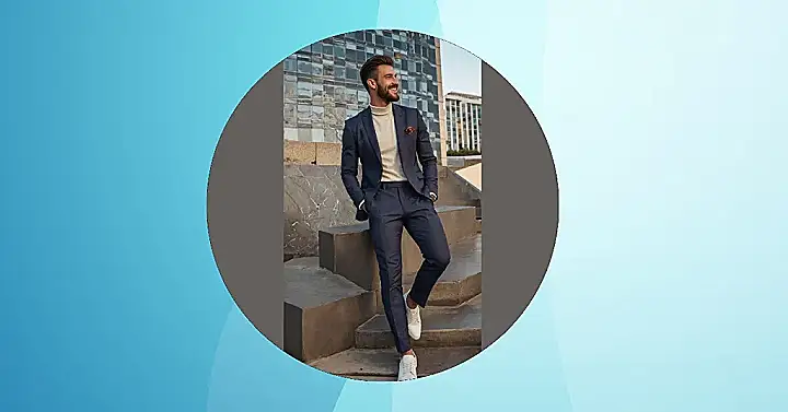 Check out this guy looking sharp but totally chill in his blazer outfit! Who knew you could ditch the tie and dress shoes and still look like you’re ready for anything, maybe even a secret spy mission or just grabbing pizza. He’s rocking a blazer with a turtleneck and sneakers, which basically says, “Yeah, I clean up well, but I’m also ready to run away from zombies at a moment’s notice.” It’s like the ultimate style cheat code for when you want to look put-together without feeling like you’re wearing a cardboard box.