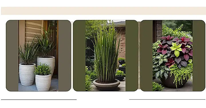Just peek inside those pots in the image – it’s like a whole tiny ecosystem thriving together. You’ve got the tall, dark, and mysterious plants adding some drama, fluffy ferns doing their best leafy dance moves, and then bam! Bright pink and purple flowers showing off like floral superstars. Plus, those little vines tumbling over the side? They’re basically saying, “Hey, follow us inside!” It’s a perfect mix that proves front porch planters aren’t just containers, they’re tiny worlds of awesome waiting to greet you.