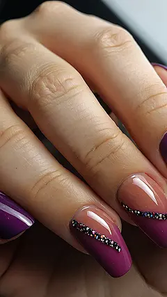 These nails are giving major fall vibes! They look like a cozy autumn evening with a touch of sparkle. The dark pink base is like the warm hues of the leaves changing, and that glittery line is like the first snowflakes of the season, catching the light in a magical way. Maybe we should rename this style “Autumn Sparkles” or something even more creative! Who knew that a little bit of glitter could make nails look so sophisticated and fun?