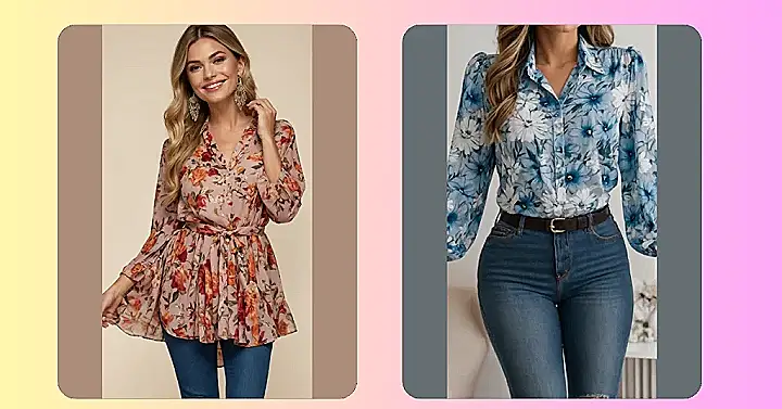 Wearing a floral blouse outfit is basically like carrying around your own happy garden, minus the dirt and tiny bugs! This one in the picture totally proves it; the pink with all those bright flowers just screams good vibes. It’s the perfect way to look instantly put-together without even trying too hard, and the flowy sleeves add that extra touch of casual cool. It’s the kind of shirt that makes you feel ready for anything, whether it’s hitting up the mall or just chilling with friends, because who wouldn’t feel awesome wrapped in a bouquet?