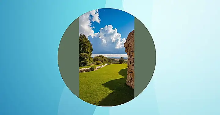 This picture makes me want to grab a blanket and lay down on that perfectly manicured grass! Imagine lounging on that luscious green patch with the warm sun on your face. I bet you could get lost in the fluffy clouds and forget all your worries! Just look at those majestic clouds, they’re so big and white, it’s like they’re floating in a giant, blue, cotton candy sky!
