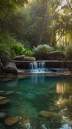 This picture is like a scene straight out of a fairytale! Imagine yourself wandering through a lush forest, sunlight dappling through the leaves, and then BAM! You stumble upon this beautiful waterfall cascading into a crystal-clear pool. It’s like Mother Nature decided to create her own personal oasis for a relaxing escape. You can almost hear the gentle sound of the water and feel the cool mist on your face.
