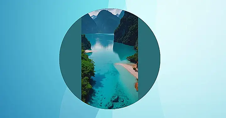 The mountains in the background look like they’re guarding the water, making sure nobody messes with this amazing hidden spot. It’s like a secret world, just waiting for someone to discover it. I can’t help but imagine a pirate treasure buried on that tiny beach, just waiting to be dug up. Now that would be an adventure!