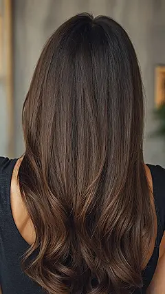 Check out this totally smooth, wavy brown hair! Doesn’t it look like it just got back from a fancy salon, even if it’s just chilling at home? That rich, deep brown color just catches the light in a way that makes you want to run your fingers through it (but maybe don’t do that to random strangers!). Having hair this lovely probably means you get extra style points without even trying, like when you wake up and it just magically falls into place. Plus, it’s like carrying around your own cozy, chocolate-colored blanket on your head, which is pretty cool, right?