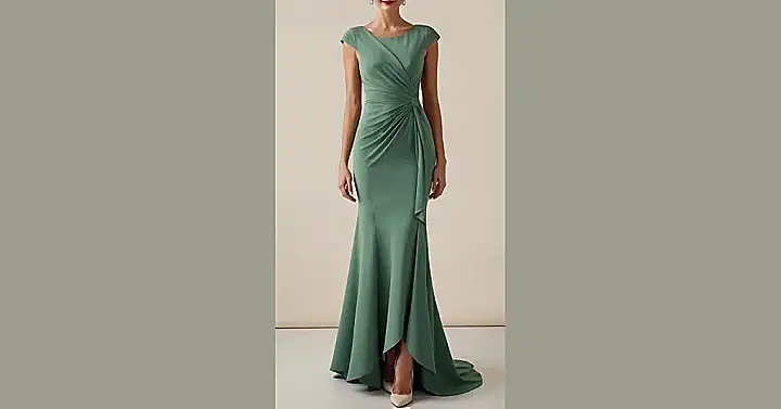 Finding a dress for Mom for a big day, like a wedding or fancy party, is a whole mission. Suddenly, the sweatpants and comfy sweaters are out, and something like this sleek green number appears. It’s got that fancy swirly fabric stuff going on, like it’s ready for a red carpet, not just dancing awkwardly at a reception. You almost expect her to start gliding instead of walking when she puts on her official “mother’s dress.”