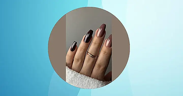 Forget about boring old summer colors, fall is the time to bring on the rich hues and cozy vibes. These nails are like a warm mug of pumpkin spice latte – totally delicious and perfect for the season! They’ve got that dark, moody vibe going on with the deep burgundy, but then they’re also super cute and playful with the soft brown tones. It’s like a perfect balance of sophisticated and playful!