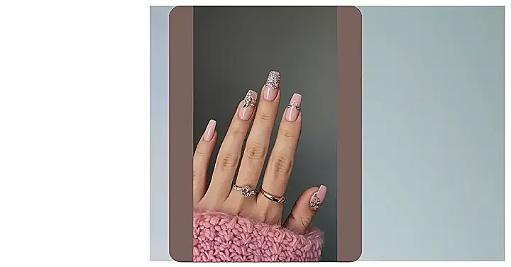 The picture shows some pretty awesome nails! The pink ombre effect is so cute and perfect for fall. It’s like a sunset on your fingertips! But what really steals the show is the ring collection. This person has got their finger game on point, with multiple dainty rings and a sparkly one that looks like a cute little butterfly. I mean, come on, how could you resist wanting to try out different rings with such stylish nails? It’s almost as if the nails and the rings were made for each other!