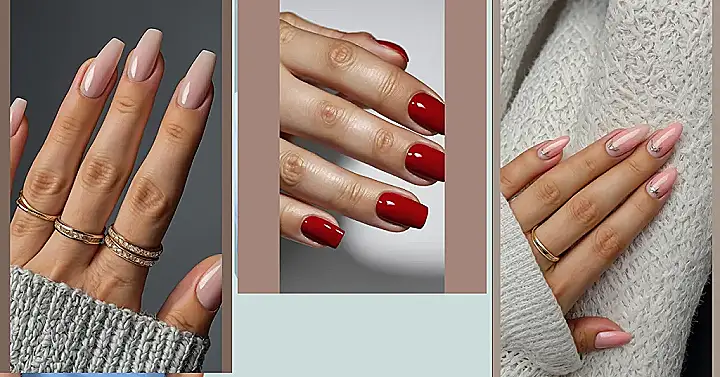Feeling like your fingers are a little… basic? These fancy nails in the picture are totally giving off ‘main character’ vibes. We’ve got that pop of bold red making a statement, mixed with a chill nude that’s like, “Yeah, I’m fabulous, but also I could totally just chill on the couch in a fuzzy sweater.” It’s the perfect combo for when you want to look put-together for your Zoom class but also ready to snack right after. Plus, peep those cool rings adding extra sparkle – because if your nails are this fancy, your accessories gotta match the energy!