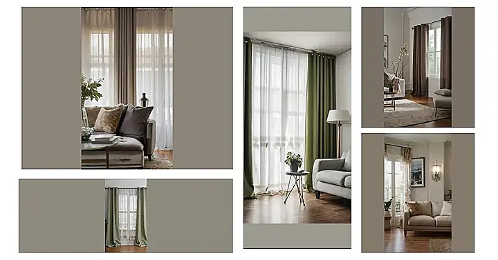 The picture shows a living room with curtains that are just begging you to relax. They’re like a soft, cozy hug for your windows, letting in just the right amount of light. You can almost feel the sunshine filtering through the sheer curtains, warming the room and making it feel extra inviting.
