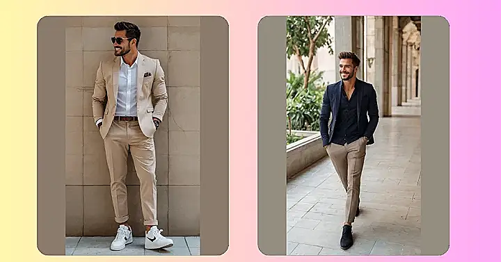 This guy knows how to rock smart casual! It’s like a mix between looking all dressed up and super comfy at the same time. He’s got on a blazer, which makes him look fancy, but he’s paired it with some cool khakis and white sneakers, so he’s definitely not going to get sweaty at the school dance!