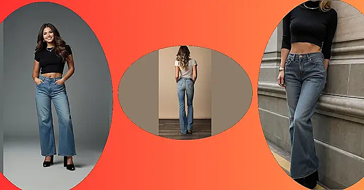 These denim jeans are totally giving off chill vibes, like you’re about to stroll through a music festival or grab an iced coffee with your bestie. They’ve got that classic flare thing going on, which is super flattering and makes you look like you’ve stepped straight out of a 70s movie – in the best way possible, of course!