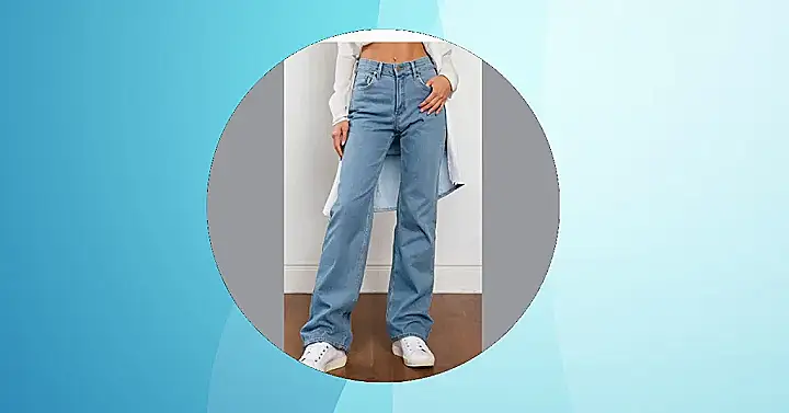 These jeans are totally rocking the retro vibe! You know those wide-legged pants your mom probably wore in the 70s? Yeah, those! They’re making a comeback, and they’re cooler than ever. These “bell bottoms” (that’s what the cool kids call them) look super stylish with a crop top and some classic white sneakers. It’s like stepping out of a time machine, but in a good way! Imagine yourself strutting down the hallway with these jeans, feeling like a total rockstar!