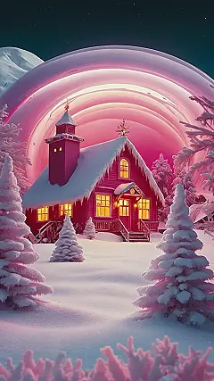 This Christmas wallpaper is seriously cute! Imagine living in this little pink house, all cozy and warm with the snow falling softly outside. It’s like a scene from a Christmas movie, only way more awesome because the house is bright pink! The glowing windows make it look super inviting, like someone’s baking cookies inside and getting ready for a visit from Santa (who might be a little surprised by the unexpected color scheme, though!). It’s totally Instagrammable and would make even the grumpiest Grinch smile.