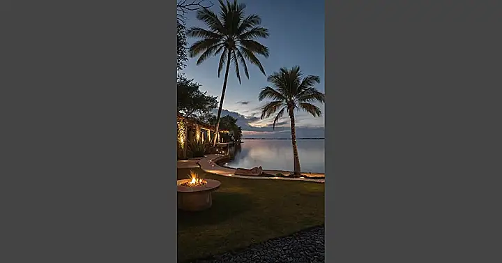 Imagine this: You’re sprawled out on a comfy chair by a crackling fire pit, surrounded by the gentle sway of palm trees. The air is calm, and the only sound is the gentle lapping of water against the shore. It’s like stepping into a postcard, but better, because you’re actually there! This spot, with its palm trees, fire pit, and tranquil view of the water, is the ultimate relax place – a place where you can kick back, forget about your worries, and just enjoy the moment.