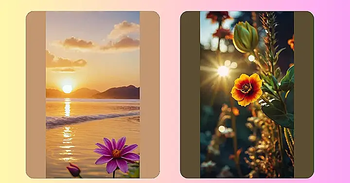This image is like a postcard from a dreamy vacation. It’s got everything: a sunset that’s so bright, it’s like the sun is giving a giant hug to the ocean. And then there’s this sweet, little flower just chilling on the beach, totally unbothered by all the drama happening around it. It’s like the flower is saying, “Hey, chill out, enjoy the moment!” This picture would look amazing on your phone or computer ‚Äì it’s like a little reminder to take a deep breath and appreciate all the beauty around you.