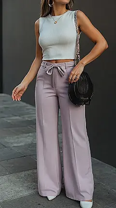 This outfit is giving us major “I’m in charge” vibes! Those wide-leg trousers are like a statement piece for your legs – they’re comfy, flattering, and make you feel like you can conquer anything. It’s like, you’re not just wearing pants, you’re wearing confidence! Pair them with a simple black top, and you’re good to go!