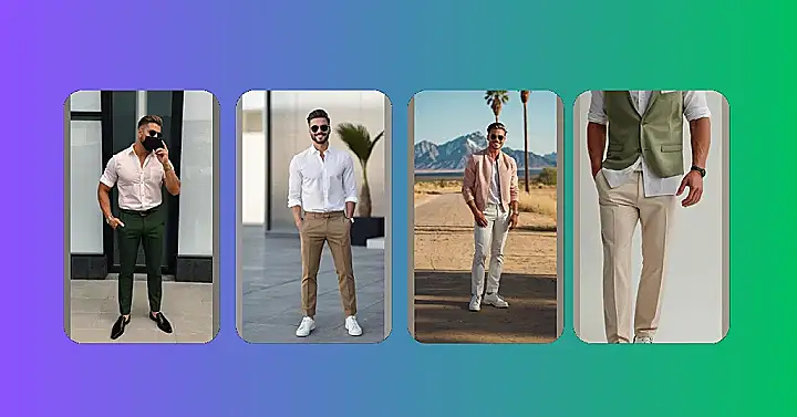 Want to look like you just stepped out of a magazine? Check out this guy! He’s rocking the “effortlessly cool” look with a light blue shirt and crisp white pants. It’s like he’s saying, “Yeah, I woke up like this,” even though we all know it probably took him a solid hour in front of the mirror (totally worth it, though!). If you are looking for mens handsome outfits, this is it.