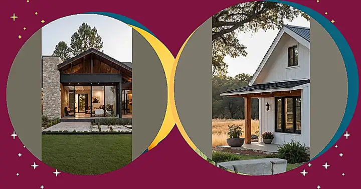 This ranch house exterior looks seriously cozy with its dark wood siding and warm lights glowing from inside. It’s got that vibe like it’s seen a few rodeos (or at least a really good barbecue) but still knows how to chill out. Those big windows are practically screaming “come on in, it’s warm in here,” making you wonder what awesome stuff is happening indoors. It’s less ‘spooky old house’ and more ‘cool aunt’s place’ that probably has comfy couches and maybe a secret stash of snacks.