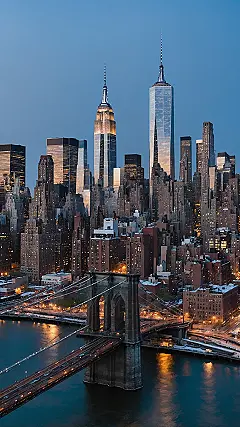 Peeking at this picture feels like catching New York City just after the sun decided to call it a day during the summer. Those towering skyscrapers, like the shiny one that looks like it’s made of mirrors and the classic pointy one, seem to glow as the city lights start twinkling on. You can practically hear the distant honking and imagine all the wild summer stuff happening down on the streets below, maybe someone’s even having a rooftop BBQ up on one of those balconies if they’re lucky enough!