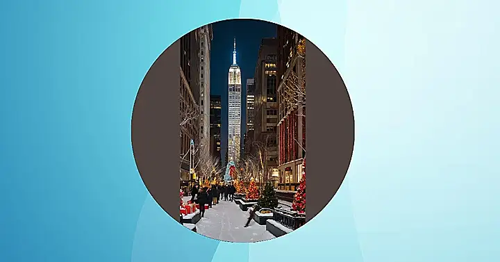 Imagine this: It’s a chilly December night in New York City. You’re walking down a snowy street, and the Empire State Building is glowing with bright blue Christmas lights, looking like a giant, glittering Christmas tree. The sidewalks are lined with twinkling lights and festive vendors selling everything from hot cocoa to hand-knitted scarves. You can almost smell the gingerbread cookies baking in nearby shops.