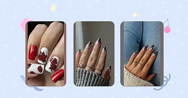 Feeling like your nails need a glow-up that screams “I’m stylish and I know it”? Check out these designs that are blooming with cuteness! We’ve got solid red nails that pop like a cherry bomb and then BAM! Roses that look like they came straight from a romance movie. Seriously, if your nails could talk, they’d be saying, “Look at me, I’m the main character!”