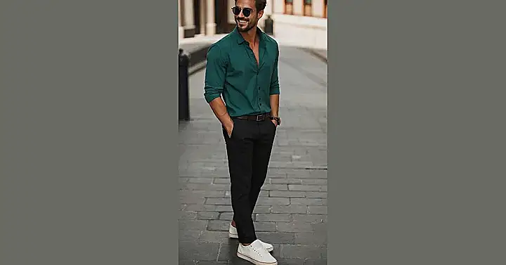 Want to ditch the boring t-shirt and shorts combo this summer? Take a page from this dude’s book! He’s rocking a look that says, “I’m cool, collected, and probably know where the best ice cream place is.” That green shirt is a total power move, and the black pants keep things classy without being stuffy. Plus, those white sneakers are the perfect finishing touch – comfy enough for a day of exploring, but stylish enough to impress.