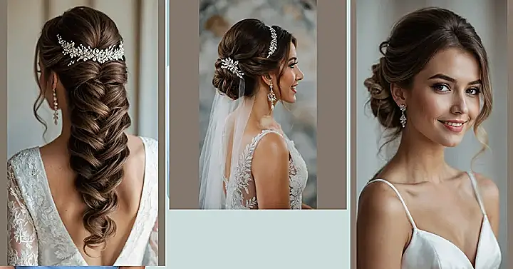 That perfect hairstyle, those earrings, and maybe even a little veil like the bride in the picture? It all comes together to make you feel like you’re stepping onto a runway, only way more important! Thinking about bridal hairstyles 2025 means figuring out if you want giant sparkly clips that could double as disco balls, flower crowns that scream ‘forest fairy’, or perhaps just a single perfect curl that behaves itself. Just remember, even if a rogue bobby pin tries to make a run for it, you’ll still look awesome because you’re celebrating YOU on the big day!
