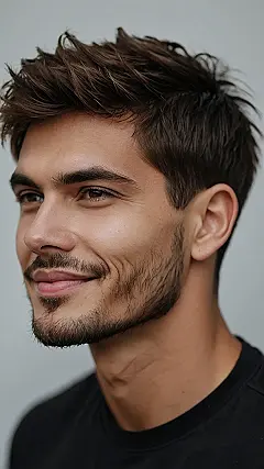 Okay, so check out this dude’s hair! It’s like a sunset but on his head. That’s the power of a fade haircut. Short on the sides, long on top – it’s the hairstyle equivalent of saying, “I’m here to look good and maybe steal your girl… or boyfriend… or both!” It’s sharp, clean, and definitely a head-turner, perfect if you’re tired of looking like you just rolled out of bed (even if you did!).